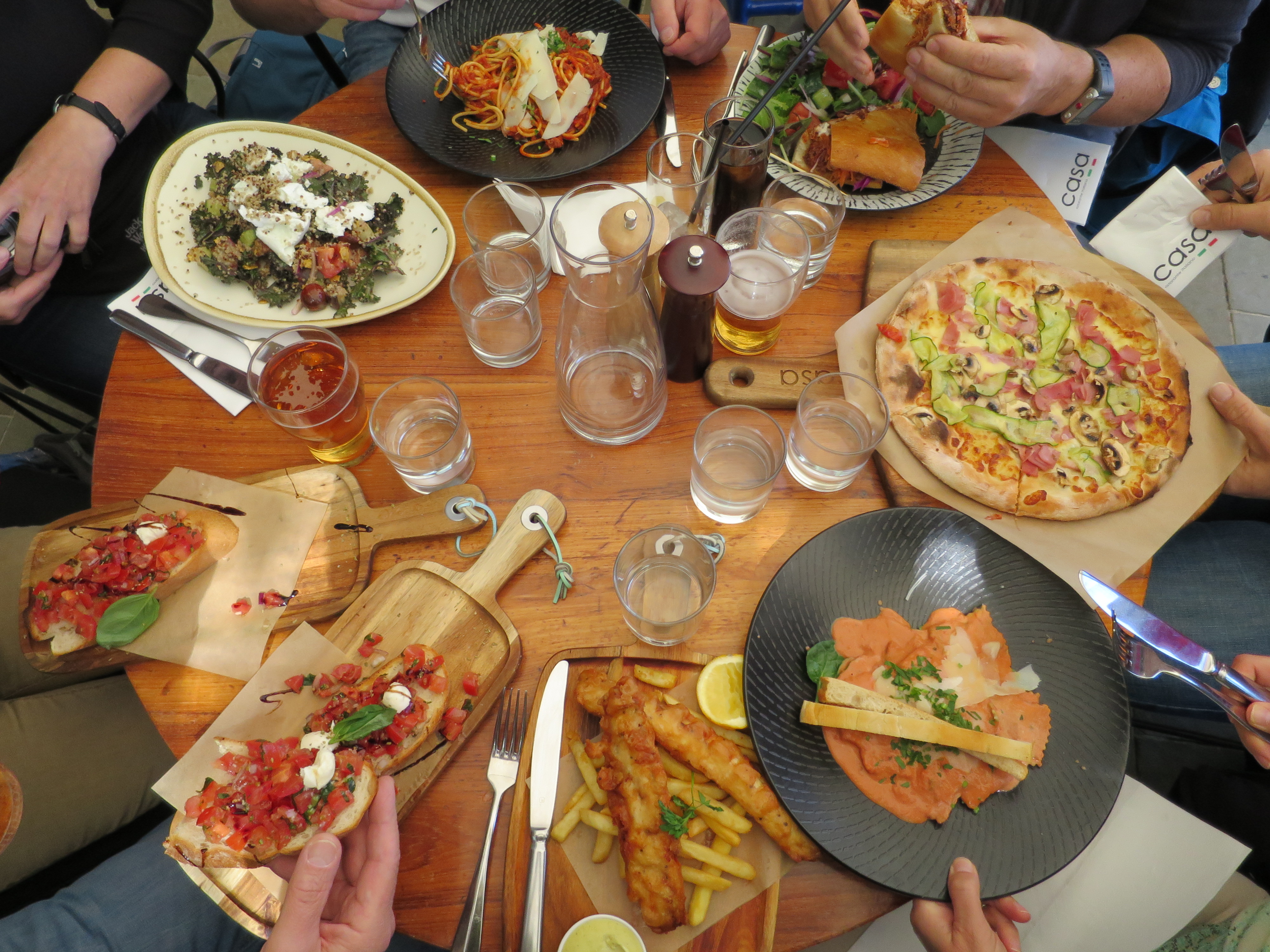 Nach der Ankunft im Hotel konnten wir leider unsere Zimmer noch nicht beziehen da die Reinigung der Zimmer noch nicht abgeschlossen war. Unsere Koffer wurden aber in einen Raum neben der Rezeption eingestellt und mit Ketten verschlossen. Kurzerhand haben wir uns dann entschlossen einen Spaziergang zum Hafen zu unternehmen und gleich etwas zu Mittag zu Essen. Christine ließ sich Fisch and Chips schmecken – ich hatte einen BBQ Pulled Pork Burger mit Salat. Alles war sehr fein.