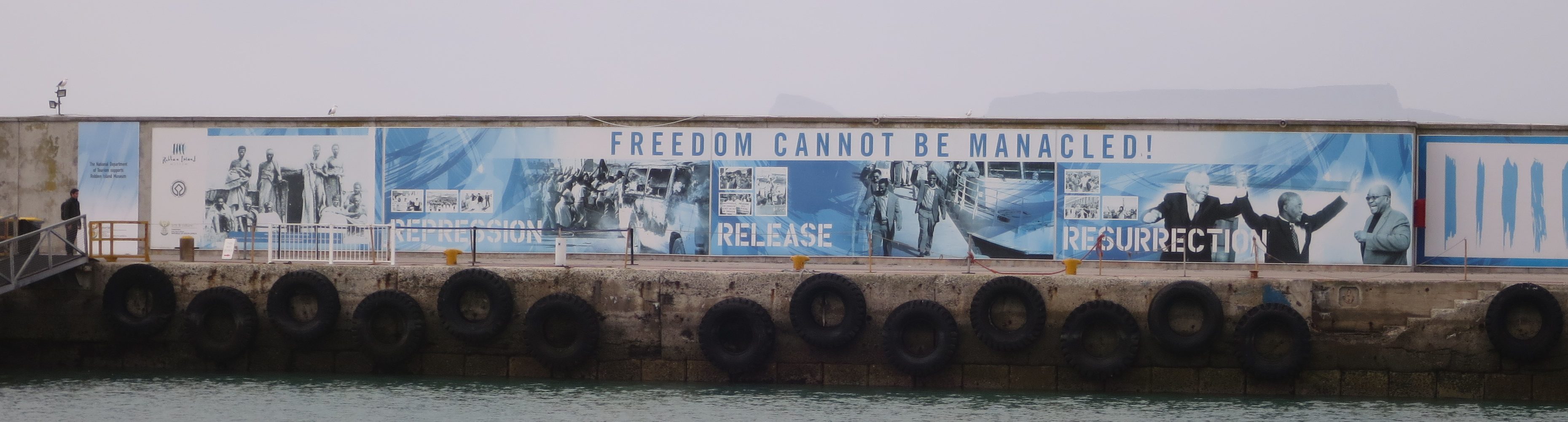 heute schon am letzten Tag unserer Weltreise angelangt, ging es nach dem Frühstück als erstes mit dem Schiff auf die Gefängnisinsel „Robben Island Museum Tour „. Hier waren politische Gefangene u.a. auch Nelson Mandela inhaftiert. Sie ist 12 km von Kapstadt entfernt – es hat kein einziger Häftling den Ausbruch aus diesem Gefangenenlager überlebt. Wir wurden mit Bussen über Robben Island gefahren, wo uns die Gefängnisse und Einrichtungen der ganzen Insel gezeigt wurden.