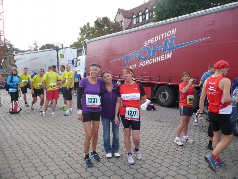 Nun musste noch fix zum Start an den Forchheimer Marktplatz gejoggt werden – dort angekommen verstauten wir unsere Rucksäcke auf die LKW’s die gottseidank noch geöffnet hatten – und nun hieß es in letzten verbliebenden Minuten des Puls wieder am Normalniveau zu bringen.